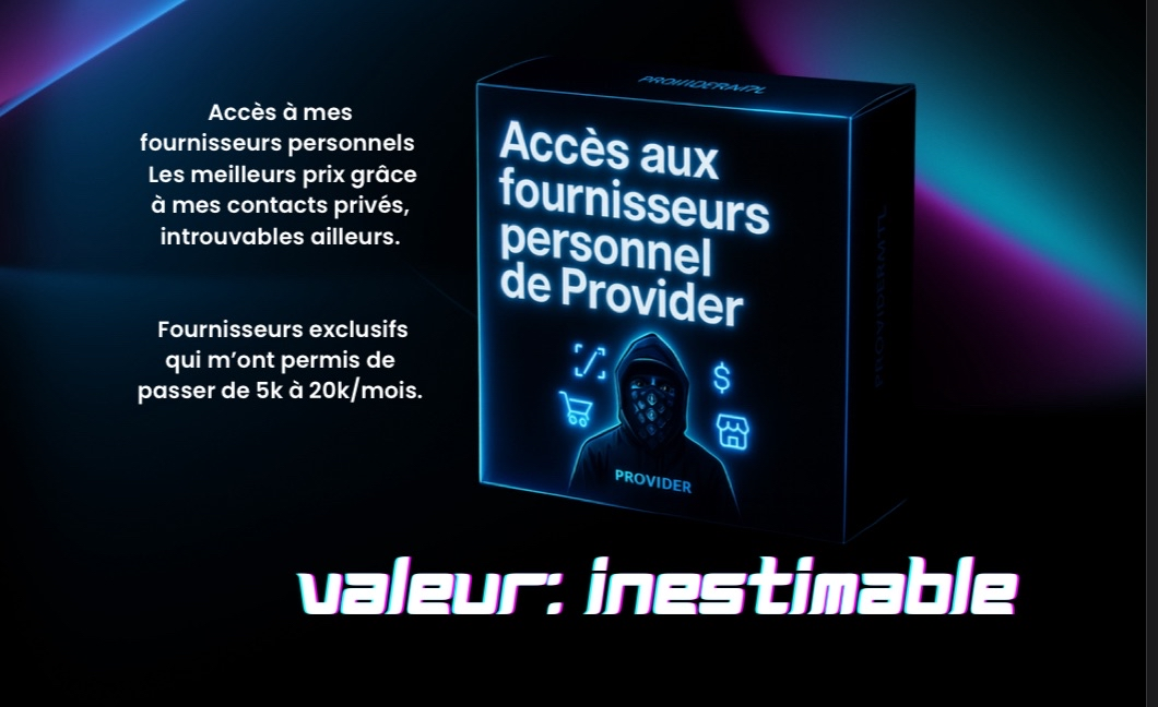 Tu achètes un accès à une opportunité, pas un produit. Et tu es guidé du début à la fin pour que tout soit simple et que tu puisse avoir un accès exclusif aux fournisseurs les plus fiables et rentables du marché, habituellement réservés au top 1%